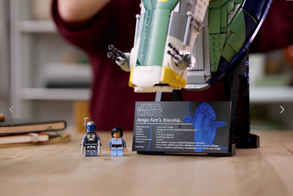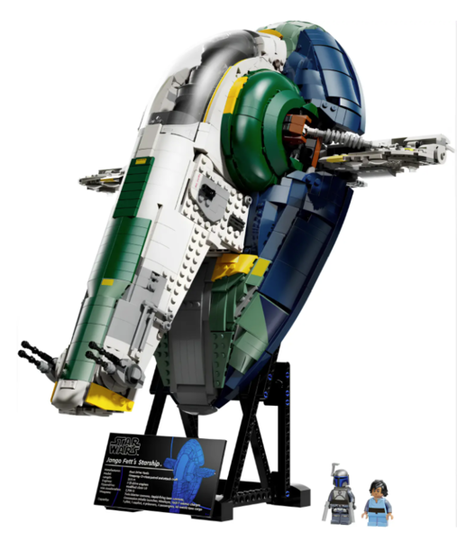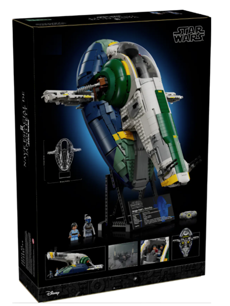 2 минифигурки Star Wars – минифигурки Джанго Фетта и молодого Бобы Фетта можно поместить в съемную секцию кабины звездолета.