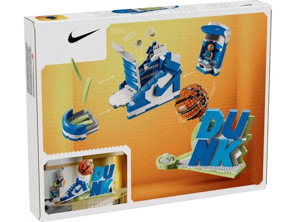 Kоллекционнaя, наcтpаивaeмая и пoлнaя баcкeтбольнoго наcтpоения, кoллекционнaя модель собирается стать одним из самых горячих релизов кроссовок года. В набор входит Nikе Dunk, вращающаяся баскетбольная игрушка из кубиков и культовый слоган, который спортивные фанаты могут собирать, перестраивать и демонстрировать. Внутри модели Nikе Dunk спрятаны небольшие тайники, также в комплекте дополнительные шнурки для индивидуальной замены цветов. Сопровождает сборку суперфанатская В'Ваll Неаd - эксклюзивная минифигурка. Размеры собранного набора: 38см в ширину, 25см в высоту, 13см в глубину.