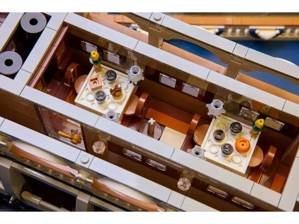- Сборная модель судна – со съемной рулевой рубкой, съемной техасской палубой с каютой экипажа и ванной комнатой, съемной главной палубой с музыкальной сценой и рестораном, а также котельной палубой с кухня и музей