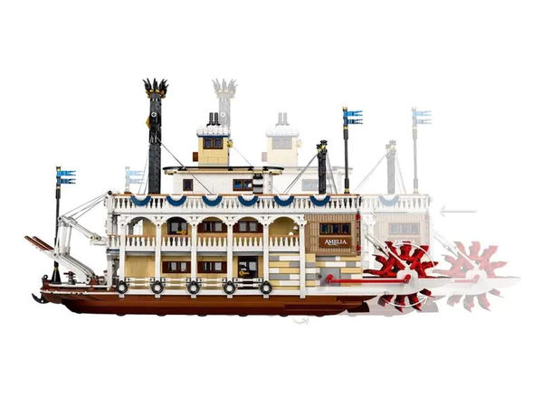 Переместите лодку по поверхности, чтобы привести в действие весло, соединенное с "паровым" двигателем, поверните штурвал в рулевой рубке (или ручку снаружи), чтобы привести в действие руль, поднимите/поверните посадочные ступени и бросьте якорь. Осмотрите рулевую рубку, каюту экипажа и ванную комнату на палубе "Техас"; музыкальную сцену и ресторан на главной палубе; а также котельную палубу, где есть кухня и музей паровых двигателей, в котором представлены рабочий поршень, паровой двигатель Ватта и многое другое. Этот коллекционный набор станет отличным подарком для мужчин, женщин и всех любителей морских путешествий или истории. Содержит 4090 деталей.