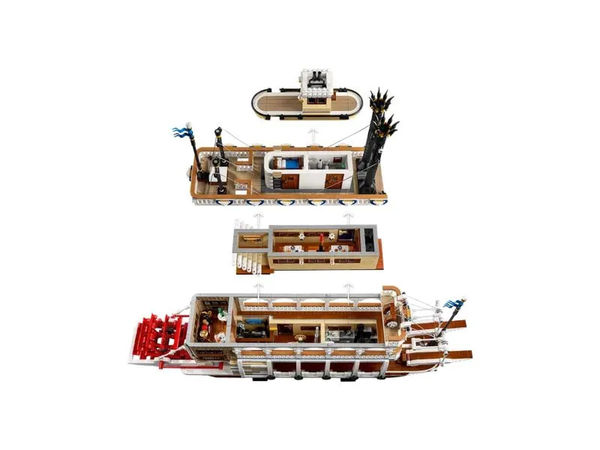 - Выбор фанатов - Этот коллекционный набор для взрослых входит в линейку Ideas , где каждый конструктор создан дизайнером–фанатом. Эта демонстрационная модель лодки в масштабе минифигурки, состоящая из 4090 деталей, имеет размеры более 15,5 дюймов (40 см) в высоту и 27 дюймов (69 см) в длину и 5,5 дюймов (15 см) в ширину