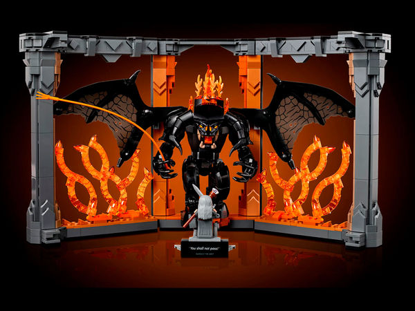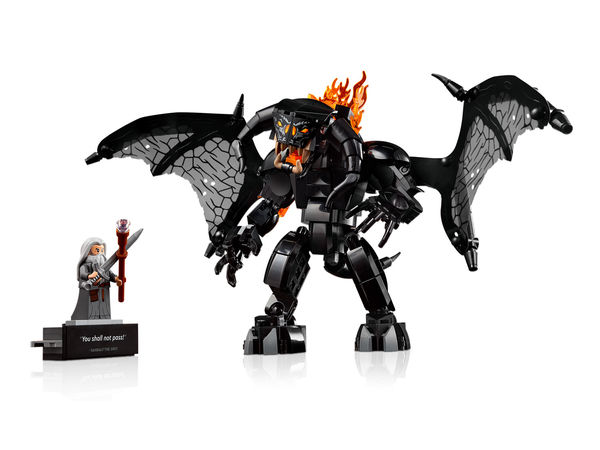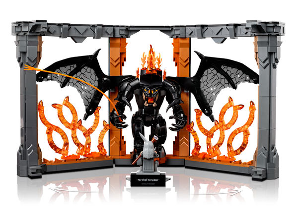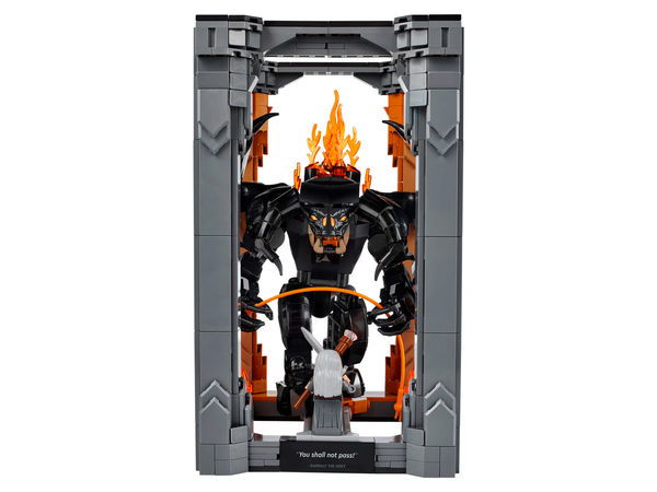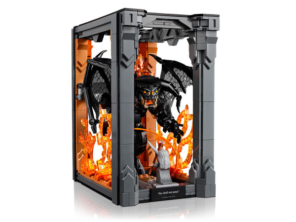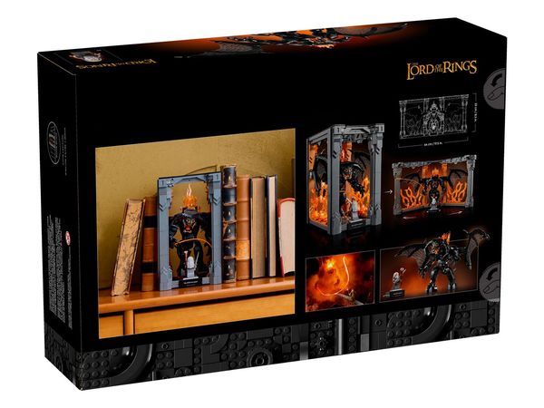 • Что в коробке: включает всё необходимое для сборки книжного уголка, а также фигурку Балрога с огненным кнутом и минифигурку Гэндальфа Серого с посохом и мечом.
