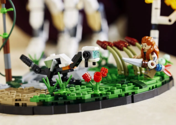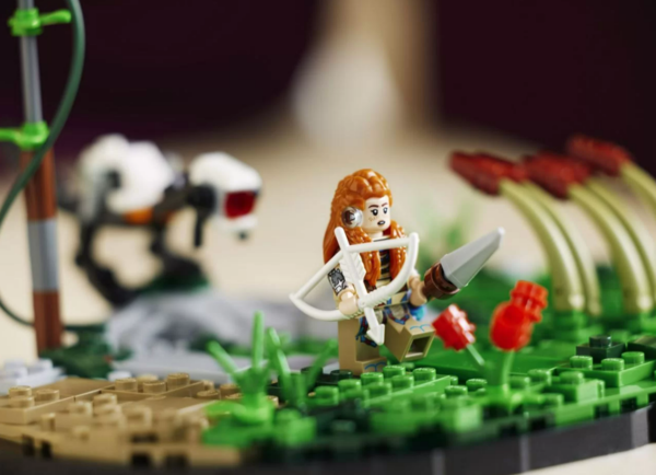Элой и Дозор — минифигурка из героини «Горизонта» Элой имеет лук и собранное из кубиков копье, а у фигурки Дозора глаза другого цвета: синий, желтый и красный. Реалистичный жираф точно воспроизведен с дискообразной головой, антеннами на шее, хвостоподобными структурами и длинными ногами.