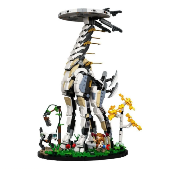 Собери великолепную модель самой легендарной машины в Horizon Forbidden West: Жирафа. Продуманные методы конструирования позволяют воссоздать реалистичные детали этой машины связи, от гладкого диска вместо головы до длинных тонких ног. Вы можете разместить модель Жирафа на подставке с внутриигровыми ландшафтами, такими как березы и ржавые светофоры. Минифигурка Элой, выпущенная в мае 2022 года, с оружием и детекторами на выбор с синими, желтыми или красными глазами дополняют это удивительное украшение. Этот замечательный подарок Horizon для вас и любого увлеченного игрока включает в себя брошюру с подробными инструкциями по сборке и историей этой модели. Собери самую известную машину в игре «Горизонт: Запретный Запад». Подробная коллекционная модель "Длинношей" перенесет тебя в таинственный мир, которым правят машины.