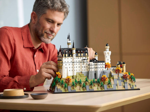 Проявите свою увлеченность культовыми достопримечательностями с этим коллекционным набором для взрослых «Замок Нойшванштайн», состоящим из 3455 деталей. Проведите время с пользой, собирая этот экспонат, который также станет отличным архитектурным подарком для вас или других любителей истории. Сборка полна сюрпризов: от внешних шпилей, башен, двора, лестниц и двускатных крыш до небольших внутренних деталей. Кроме того, листву окружающих деревьев можно менять, чтобы воссоздать летний или осенний пейзаж. Вас ждет безмятежность, пока вы собираете этот детально проработанный замок.