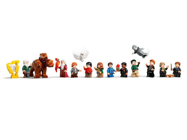 • 12 минифигурок: набор включает Гарри Поттера (Harry Potter), Гермиону Грейнджер (Hermione Granger), Невилла Лонгботтома (Neville Longbottom), профессора Кеттлберна (Professor Kettleburn), Почти Безголового Ника (Nearly Headless Nick) и Альбуса Дамблдора (Albus Dumbledore), а также фигурки Пушка (Fluffy), Букли (Hedwig) и Фокса (Fawkes).