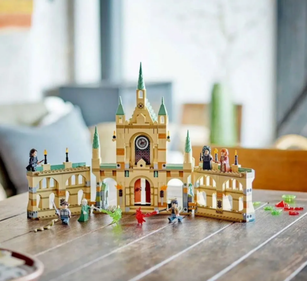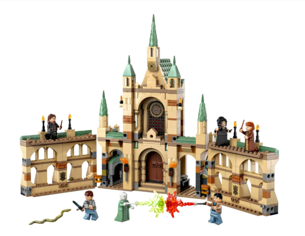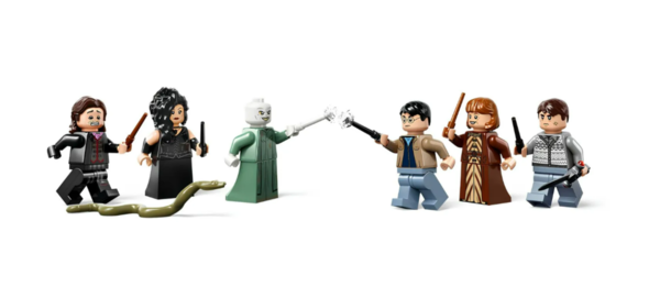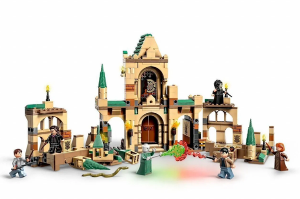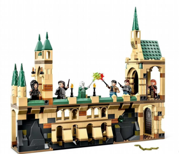 Армия Волдеморта атакует замок Хогвартс! Объединяйтесь с Молли Уизли, чтобы отразить нападение Беллатрикс Лестрейндж. Используйте Меч Гриффиндора , чтобы помочь Невиллу Лонгботтому уничтожить Нагини, затем присоединяйтесь к Гарри Поттеру на мосту и во дворе для колдовской схватки с Волдемортом. Кто одержит победу в вашем кирпичном воссоздании Гарри Поттера и Даров Смерти – финале части 2? С данным набором воспроизведите битву за Хогвартс из любимого фильма. Он представляет собой детализированную часть здания замка Хогвартс, построенную из кубиков, которую можно разбить во время сражений между Волан-де-Мортом и Гарри Поттером. Модули замка также можно переставлять, чтобы создать мост из другого запоминающегося места, и этот модульный набор соединяется с другими в серии, чтобы построить целый замок Хогвартс. Набор содержит 6 минифигурок — Гарри Поттер и Волдеморт, каждый с палочкой и колдовским элементом, Невилл Долгопупс с Мечом Гриффиндора, Струпьяр, Молли Уизли и Беллатриса Лестрейндж.