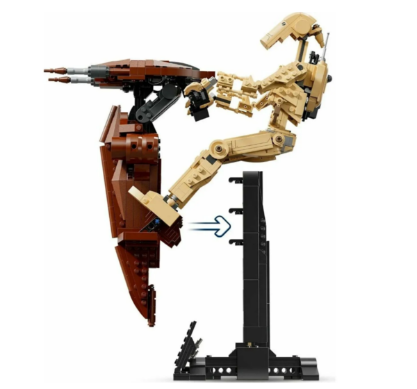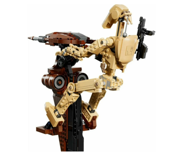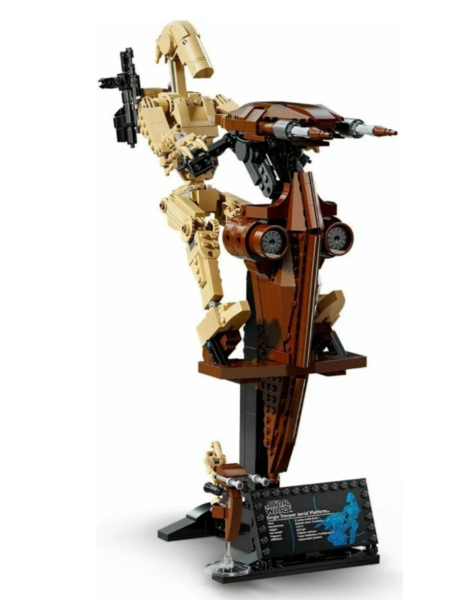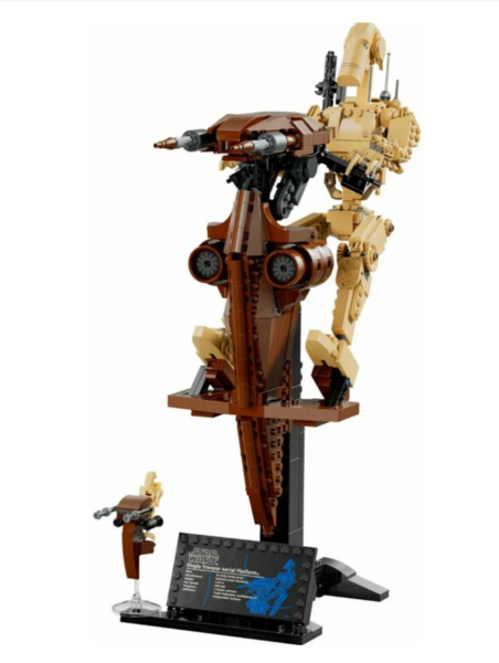 Этот набор создан для истинных поклонников саги и ценителей детализированных коллекционных моделей, готовых воссоздать один из самых узнаваемых образов армии сепаратистов. В наборе 1088 деталей, из которых вы соберёте впечатляющую композицию: боевого дроида верхом на спидере SТАР (Singlе Тrоореr Аеriаl Рlаtfоrm). Готовая модель достигает размеров — более 38см в высоту, 30см в длину и 14см в ширину, что делает её эффектным экспонатом для демонстрации.