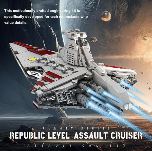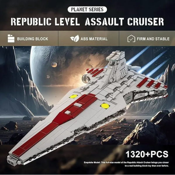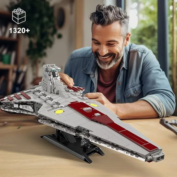 Конструктор Венатор Атакующий крейсер Республики. Пробудите воспоминания об эпических приключениях в Войнах клонов с помощью этой версии республиканского штурмового крейсера класса «Венатор» Star Wars Ultimate Collector Series аналог лего.