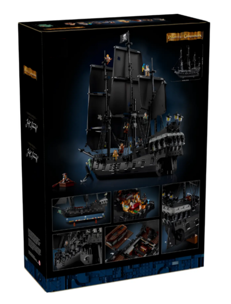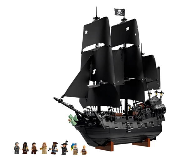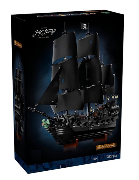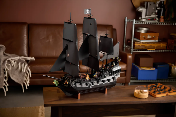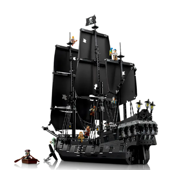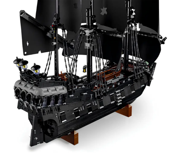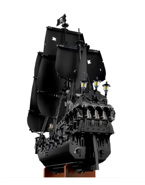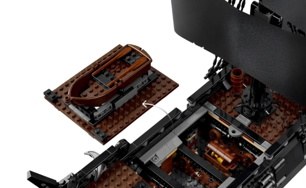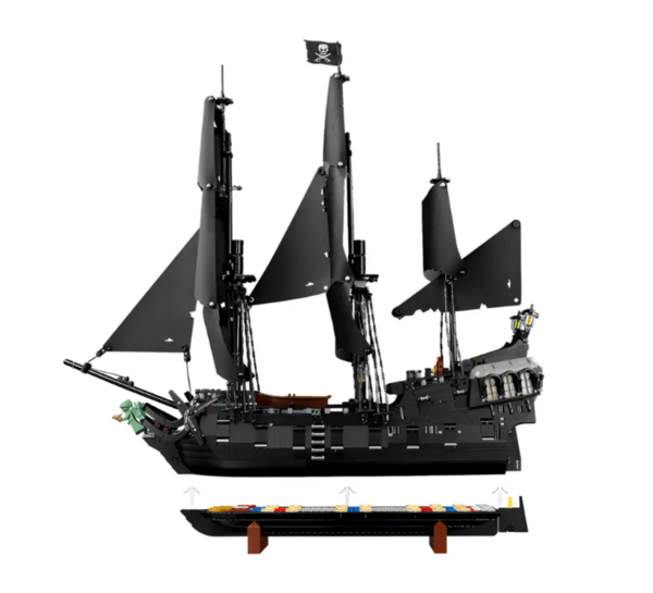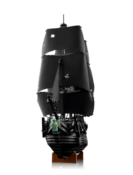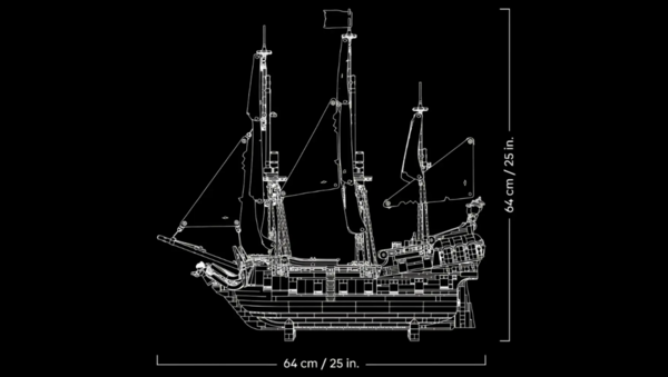На этой модели-реплике из фильма запечатлен корабль во всей его красе. Вращайте циферблаты, чтобы установить пушки левого или правого борта, поворачивайте штурвал, чтобы повернуть руль, и открывайте палубу, чтобы увидеть каюту капитана с мебелью, подсвечниками и яблоком. Дополнительные функции включают в себя съемную гребную лодку, минифигурку на носу и универсальную подставку для демонстрации под углом. Кроме того, корпус можно разделить по ватерлинии, чтобы изобразить корабль в режиме плавания.