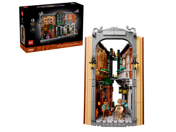 Воссоздайте таинственность викторианского Лондона с набором для декорирования книжной полки «Книжный уголок: Шерлок Холмс» (10351). Этот набор идеально подходит для поклонников классических детективных романов, становясь захватывающей выставочной моделью с культовыми персонажами, включая проницательного Шерлока Холмса, его верного спутника доктора Ватсона, загадочную Ирен Адлер, хитрого профессора Мориарти и новичка на Бейкер-стрит Пейдж. Вставьте книжный уголок между любимыми романами, чтобы создать окно в приключения, ожидающие на Бейкер-стрит. Откройте его, чтобы обнаружить книжный магазин с вращающимся окном, темную террасную резиденцию с раздвижной входной дверью, тайны и подсказки, а также детально воссозданную квартиру Шерлока Холмса 221B с уютным камином, доской подсказок и его любимой скрипкой.