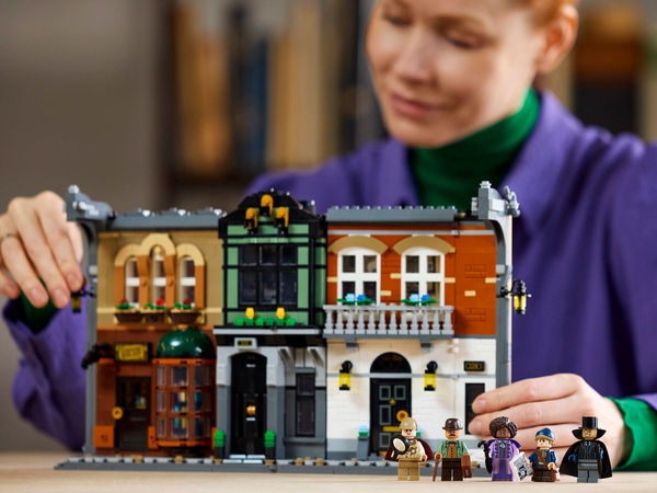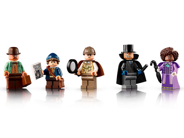 • Что в коробке: включает все необходимое для сборки книжного уголка, а также минифигурки Шерлока Холмса (Sherlock Holmes), доктора Ватсона (Dr Watson), Ирен Адлер (Irene Adler), Пейдж (Paige) и профессора Мориарти (Professor Moriarty).