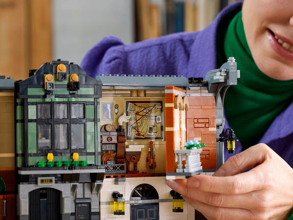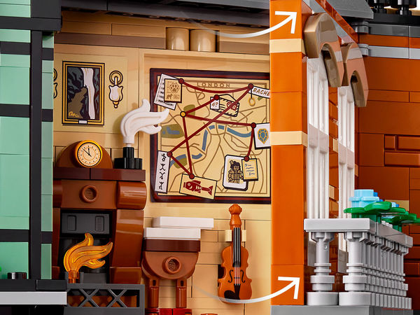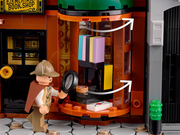 • Больше, чем просто книжный уголок: поверните ручку, чтобы распахнуть дверь в убежище профессора Мориарти и открыть фасад дома 221B, где находится квартира Шерлока Холмса с камином, доской для заметок и скрипкой.