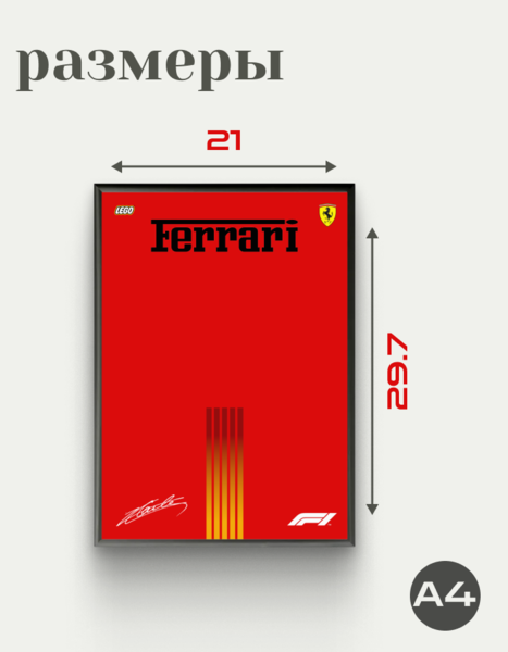 Легенда автоспорта в коллекционном оформлении. Рамка для Ferrari делает акцент на характере и истории команды, превращая модель LEGO в экспонат, который сразу привлекает внимание и смотрится статусно.