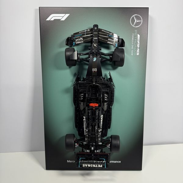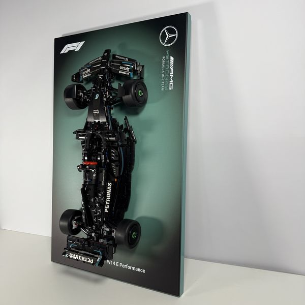 Холодная точность и инженерный минимализм. Рамка для Mercedes-AMG Petronas подчёркивает технологичный характер болида и превращает LEGO-модель в стильный арт-объект. Чистый, выверенный визуал без лишних деталей.