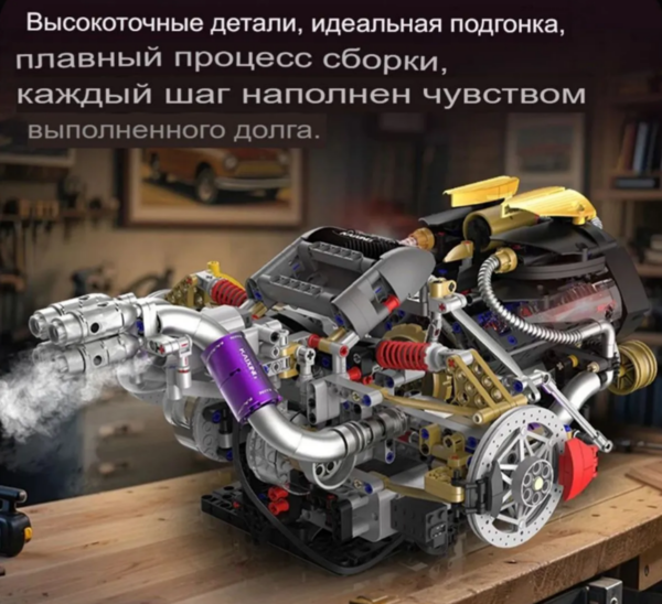 Конструктор "Двигатель гиперкара Pagani V8" – это не просто набор из 1394 деталей, это возможность прикоснуться к миру ультрасовременных технологий и почувствовать себя инженером, создающим шедевр автомобилестроения. Этот проект – вызов для тех, кто готов погрузиться в кропотливую и увлекательную работу, требующую внимательности и терпения. Это сборная модель, которая позволяет погрузиться в мир механики и инженерии. Этот набор имитирует работу настоящего восьмицилиндрового двигателя внутреннего сгорания, демонстрируя все ключевые компоненты в действии.