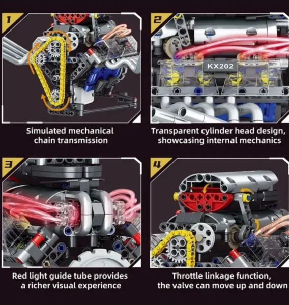 Этот набор из 665 деталей позволит вам собрать реалистичную модель двигателя V8 с подвижными деталями и LED подсветкой. Сборка конструктора развивает мелкую моторику, воображение и творческие способности, а также учит усидчивости.