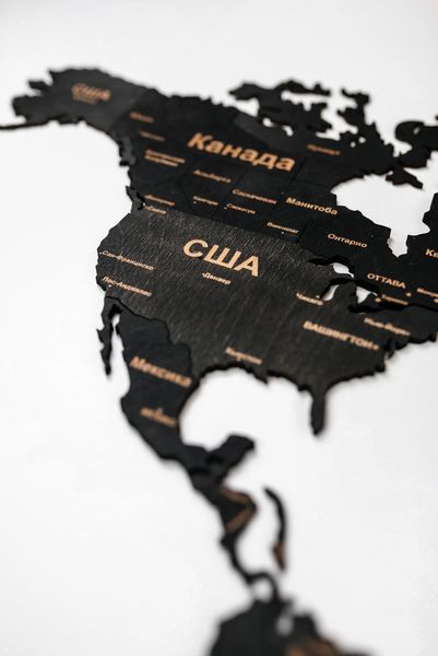 Карта мира из дерева (Obsidian, 3 уровня), 72х130 см