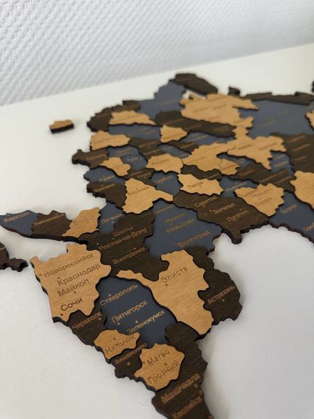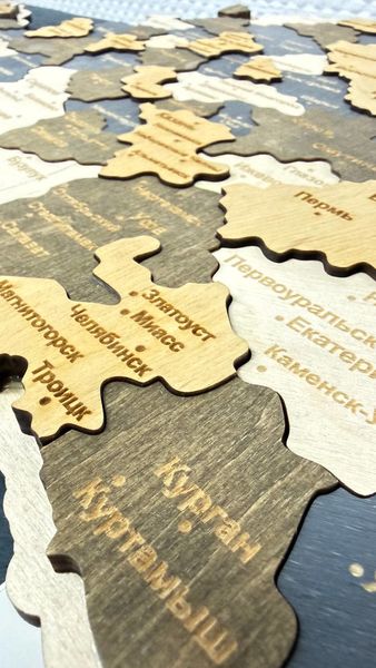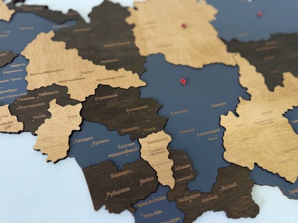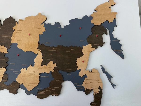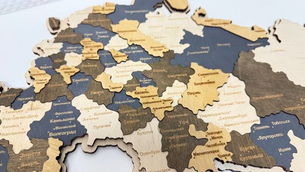 Интерьерная карта России со всеми регионами (объемная, 3 уровня) украсит ваш дом, добавит теплоты и стиля вашим стенам. Карта состоит из больших блоков, которые клеятся на стену один за другим как конструктор. Все детали вырезаны высокоточным лазером из экологичного материала HDF толщиной 3.2 мм. 2 варианта размеров под любую стену. Самостоятельная установка занимает 1-1,5 часа, ошибки исключены: в комплект входит план сборки. Оттенки вашей карты могут незначительно отличаться от цветов на фотографиях. Средства для монтажа в комплект не входят. Исходя из места монтажа выбирайте двухсторонний скотч, монтажный клей или жидкие гвозди. Чаще всего подходит двухсторонний скотч. Деревянная карта мира является декоративным товаром - некоторые маленькие регионы и острова могут отсутствовать из-за масштаба. Размер в готовом виде 58х105 см.