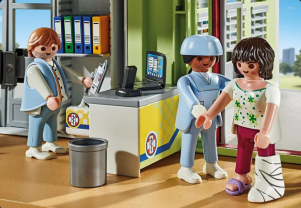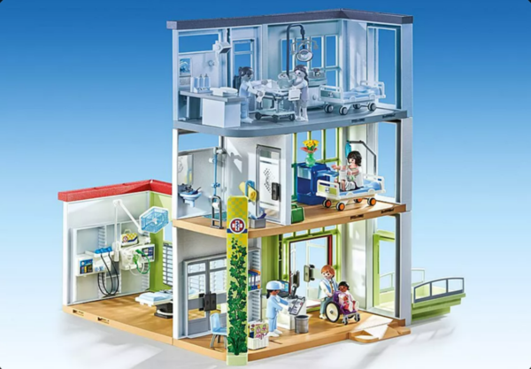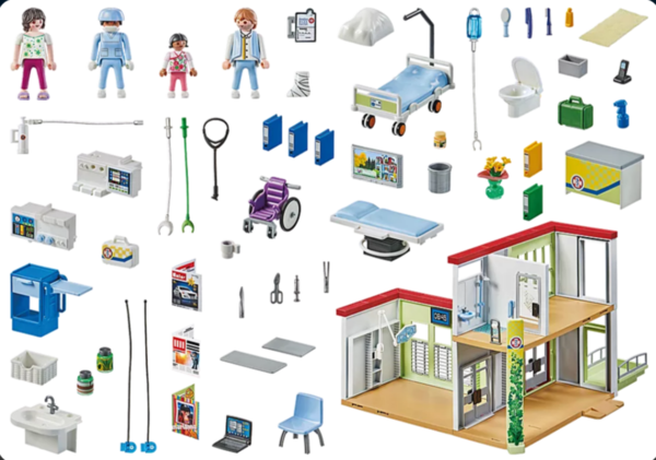 В большой и полностью оборудованной современной больнице PLAYMOBIL пациенты всегда в надежных руках. В здании есть палата с ванной и туалетом, операционная, лифт для безбарьерного доступа и множество аксессуаров. Игровой мир PLAYMOBIL Action Heroes Hospital предлагает детям от 4 лет и старше возможность в игровой форме познакомиться с темами болезней и ухода за больными, узнать о жизни в больнице и избавиться от страхов. Тщательно продуманные наборы игрушек можно настраивать и комбинировать благодаря их модульной конструкции. В набор из 165 предметов входит игрушечная больница с мебелью, 4 фигурки PLAYMOBIL, медицинское оборудование и множество аксессуаров для реалистичных ролевых игр в детской комнате. Эта игрушка PLAYMOBIL идеально подойдёт в качестве подарка на день рождения, Рождество или в качестве сюрприза для будущих врачей.