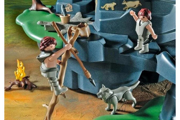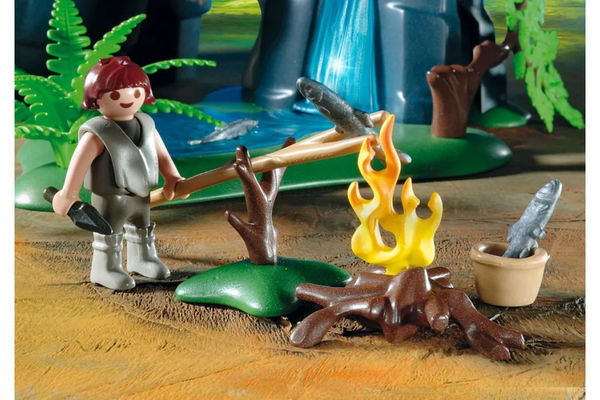Включает пещерное убежище, разветвлённую оружейную стойку и огненное дерево для защиты от врагов. На второй этаж пещеры можно попасть по складной лестнице из веток. Входящие в комплект наклейки можно наклеить на стены пещеры каменного века. Основание водопада вращается. Размеры пещеры: 40 x 26 x 28 см (Д x Ш x В).