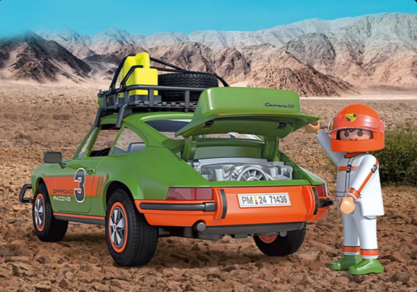 PLAYMOBIL Porsche 911 Carrera RS 2.7 Offroad с увеличенным дорожным просветом, защитой передней части и багажником на крыше для смелых поездок по пересечённой местности.