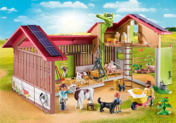 Playmobil Big Farm 71304 - это набор из 182 предметов, который подарит детям незабываемые моменты веселья. Бренд Playmobil известен во всем мире своими высококачественными игрушками, и этот конкретный продукт соответствует всем стандартам безопасности, о чем свидетельствует сертификация CE. Этот набор отлично подойдет в качестве подарка для мальчиков и девочек старше 4 лет. год жизни. Молодые фермеры смогут взять под контроль ферму, которая состоит из красочных зданий из картона и пластика, а также фигур животных и людей в масштабе 1:24. Благодаря этому продукту дети смогут развивать свое воображение и ручные способности, а также изучать основы сельского хозяйства. Вращающийся и выдвижной погрузочный кран позволяет легко поднимать тяжелые грузы.Также предусмотрены солнечные панели на крыше и зарядные станции для трактора.
