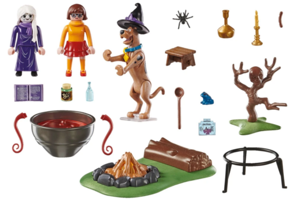 Вашего малыша невозможно оторвать от захватывающих приключений жизнерадостного Скуби-Ду на экране телевизора или ноутбука? Купите юному фанату черной магии, вездесущих призраков, отважного обжоры-пса и его друзей игровой набор Playmobil Ведьминский котел, и он сможет руководить сложным процессом варки магического зелья в реальном мире, получая от игры огромное удовольствие и столь же большую пользу. Набор состоит из 38 деталей, изготовленных из высококачественного пластика, окрашенного при помощи нетоксичных и стойких красителей. Высота каждой фигурки в наборе составляет 7.5 см, руки и головы человечков подвижны.
